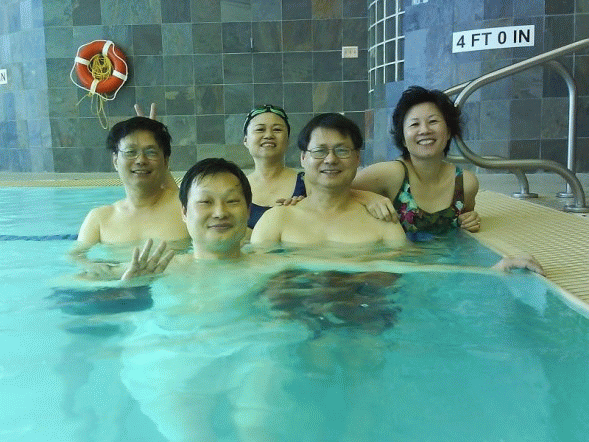 衞高榮, 衞高華, 衞高富, 衞麗雲, 衞麗霞 family re-union at swimming pool