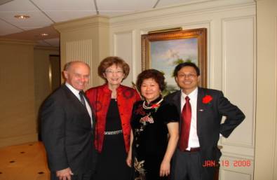 Miller,前總統柯林頓的財務部助理副部長周武修及衞先生家屬25人包括衞先生, 衞太太的父母親, 兄弟姊妹, 及來自中國大陸的親家, 連同來賓共計 160 多人到場祝賀. 各位貴賓們對衞高榮幾十年牽線搭橋 , 加強中美人民之間的交流、促進中華文化推廣都給與了極高的評價. Bob